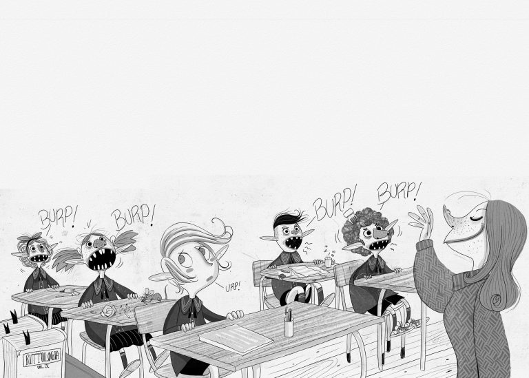 Il libro di Fabrizio Silei è stata una continua scoperta. All’inizio per esempio mi divertiva molto disegnare il protagonista, soprattutto il suo ciuffo, ora, nel secondo volume mi sto divertendo molto a disegnare e interpretare Orcobrutto e Orcabrutta.