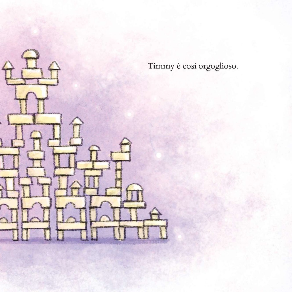 Timmy è triste, il suo castello di costruzioni è crollato, puf!, non c’è più. E ora? Tutti gli animali sono sicuri di avere la risposta giusta: uno alla volta suggeriscono a Timmy come comportarsi, ma proprio non riescono a offrirgli conforto. Poi arriva il coniglio. Piano piano si avvicina. E non dà alcun consiglio a Timmy, semplicemente… ascolta. Che è proprio quello di cui Timmy ha bisogno per ripartire. Come tutti noi.