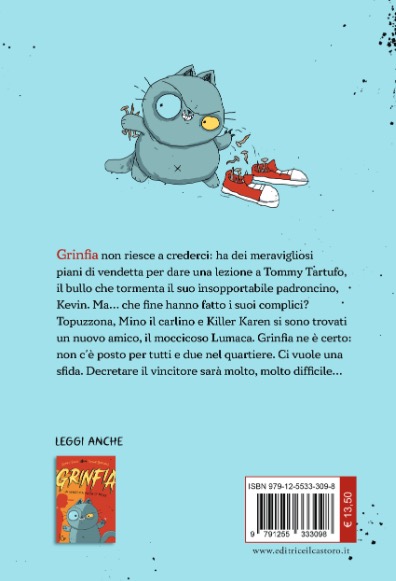 Grinfia non riesce a crederci: ha dei meravigliosi piani di vendetta per dare una lezione a Tommy Tartufo, il bullo che tormenta il suo insopportabile padroncino, Kevin. Ma… che fine hanno fatto i suoi complici? Topuzzona, Mino il carlino e Killer Karen si sono trovati un nuovo amico, il moccicoso Lumaca. Grinfia ne è certo: non c’è posto per tutti e due nel quartiere. Ci vuole una sfida. Decretare il vincitore sarà molto, molto difficile…