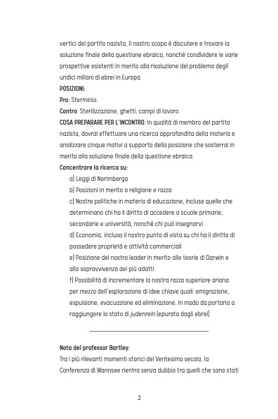 Nella cittadina di Riviere, New York, durante la lezione di storia, il professor Bartley assegna ai suoi studenti il compito di inscenare la Conferenza di Wansee, nella quale i vertici del partito nazista delinearono la Soluzione Finale della questione ebraica, i campi di sterminio. Il fine è apparentemente nobile: far capire ai ragazzi la portata tragica di quell’evento.