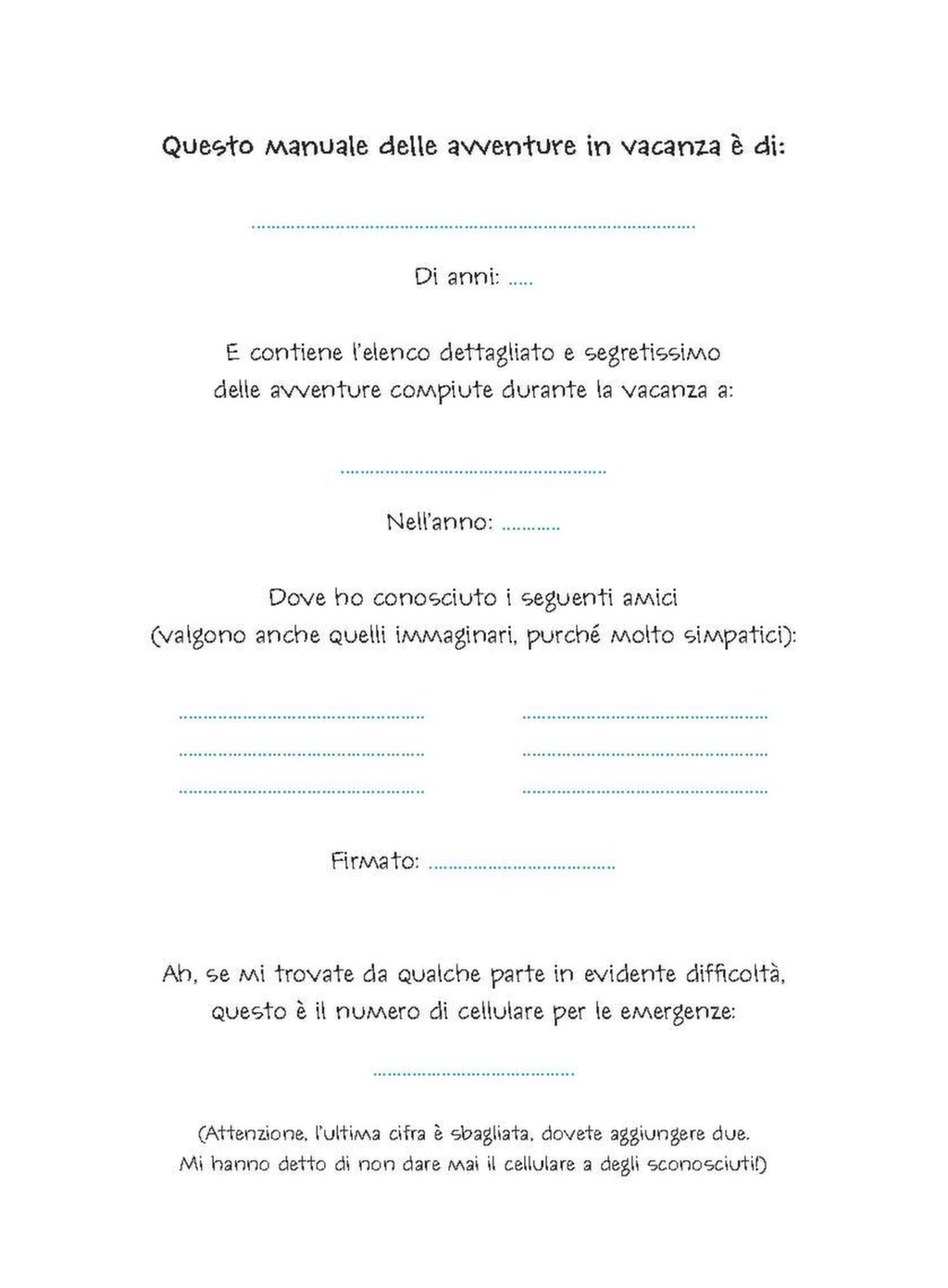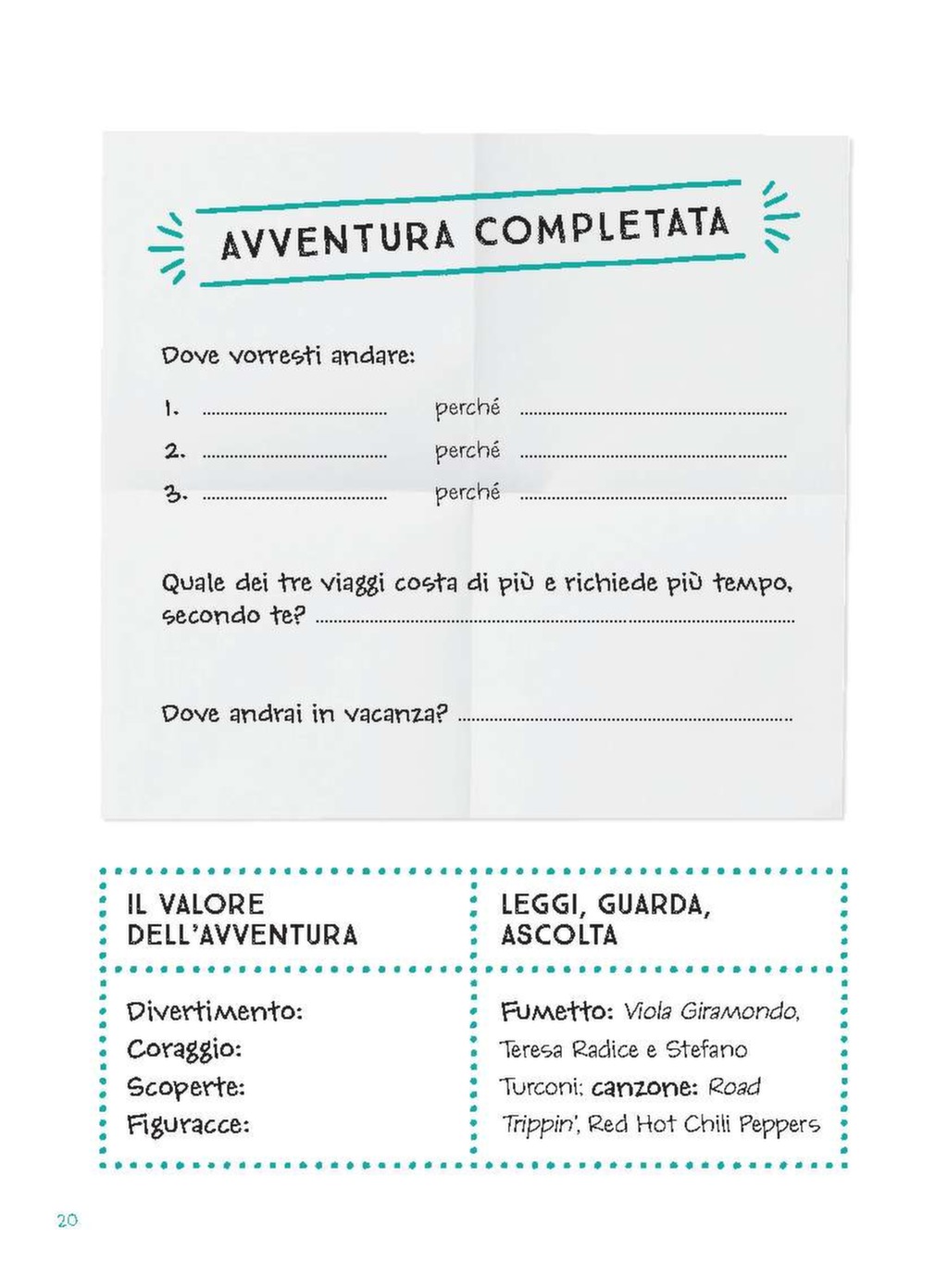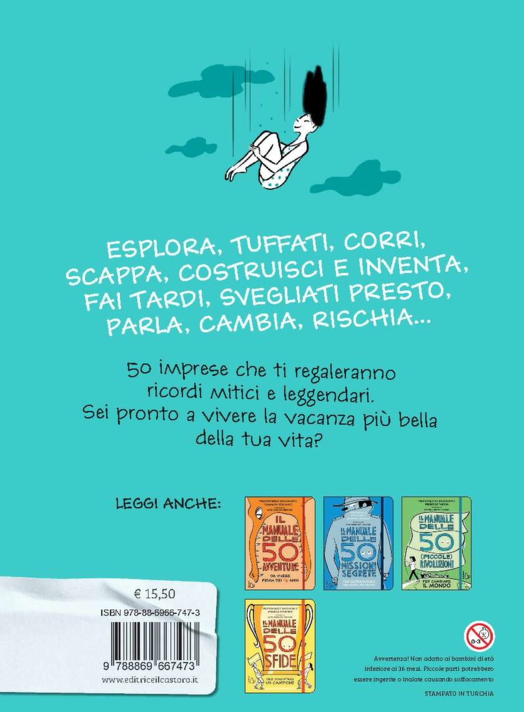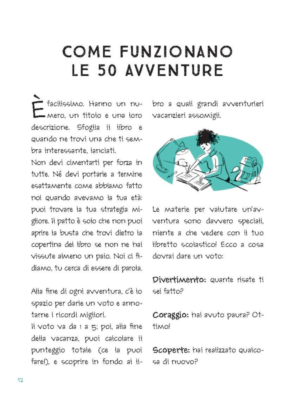 50 proposte di avventure, giochi, sfide da vivere in vacanza da soli o in compagnia, in casa o all’aperto, con tanto spazio per scrivere note, ricordi, voti alle imprese e un certificato di vero avventuriero vacanziero da conquistare avventura dopo avventura!