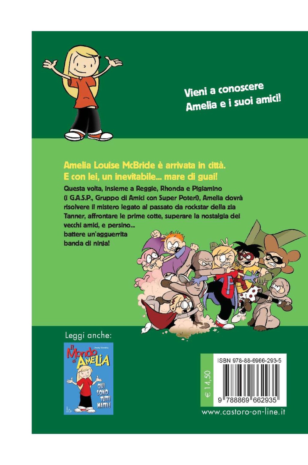 Amelia Louise McBride è tornata. E con lei un inevitabile… mare di guai! Insieme ai suoi strampalati amici Reggie, Rhonda e Pigiamino, Amelia dovrà risolvere il mistero legato al passato da rocker della zia Tanner, battere un’agguerrita banda di ninja, superare la nostalgia dei vecchi amici e persino… affrontare le prime cotte!