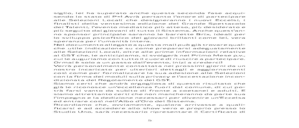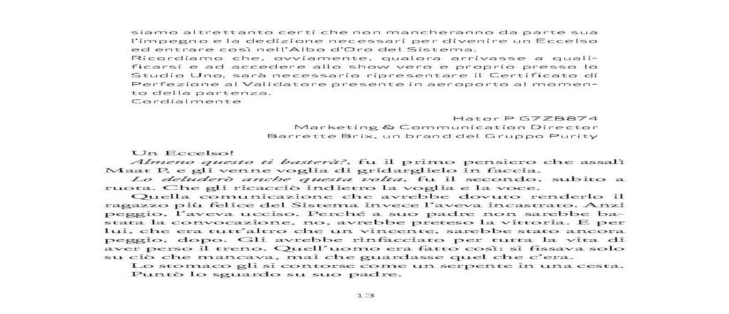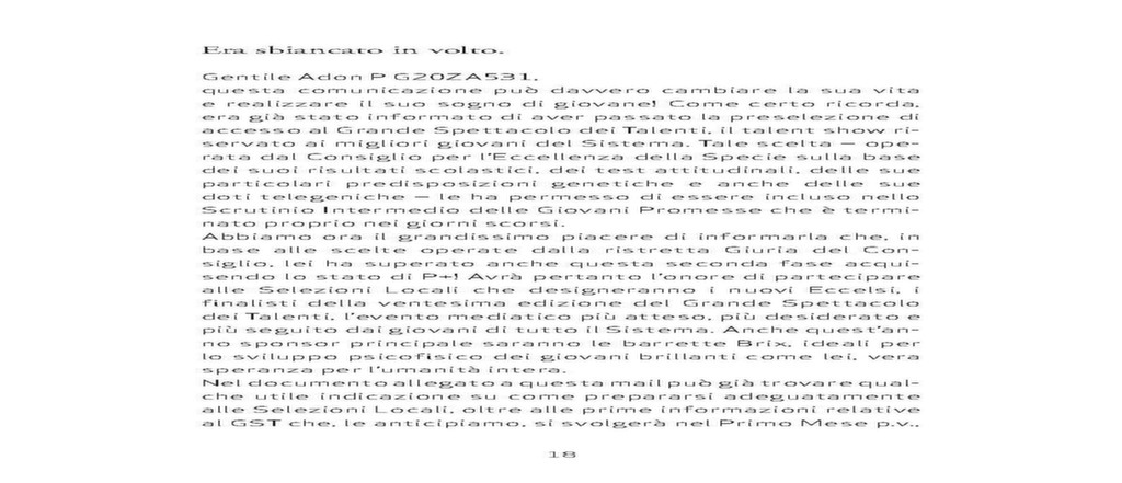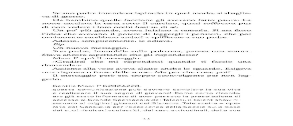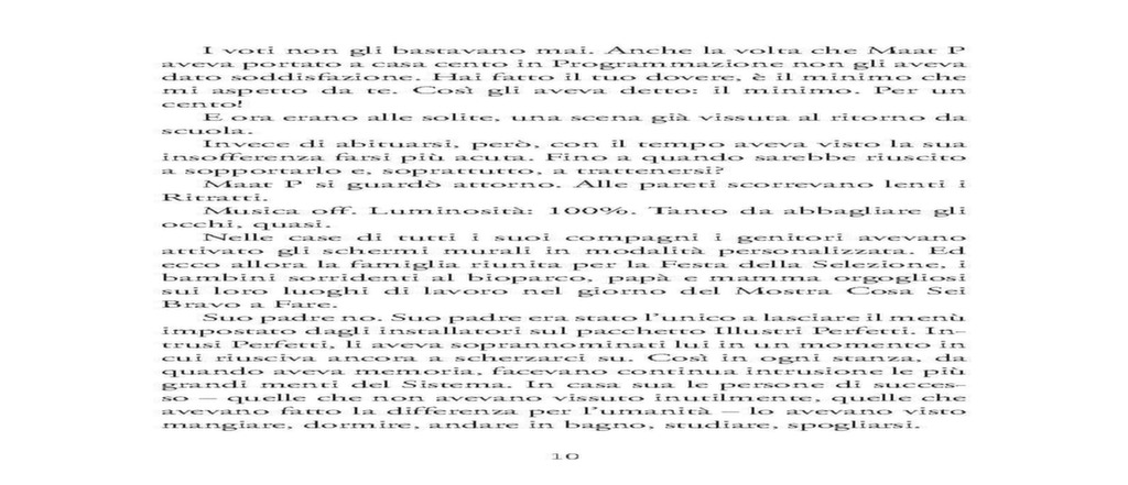 Anno 72 dalla Fondazione del Sistema. L’ingegneria genetica divide la società in due rigide classi: i Perfetti, geneticamente programmati all’eccellenza, e gli imperfetti, nati da donna e destinati ai lavori più umili. È il momento che tutti attendono: sta per cominciare il GST, il grande talent show che decreterà i migliori tra i Perfetti di tutto il sistema. Tre ragazzi sono fra i concorrenti prescelti: Eira P, bellissima e spavalda, è abituata a essere la prima in tutto. Maat P, ironico e diffidente, deve dimostrarsi all’altezza delle ambizioni del padre. Adon P, calmo e determinato, non può accettare niente di meno della vittoria. Nei loro geni è scritto un destino di perfezione, eppure ciascuno di loro nasconde un segreto inconfessabile. Tre avversari possono diventare amici? Complici? Ribelli? E quanto è forte il richiamo della libertà?