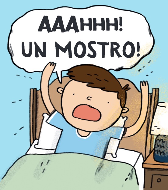 Un bambino legge un libro sui mostri prima di addormentarsi, ma che paura quando alla finestra compare… un mostro vero! Mamma e papà accorrono subito e piantano un bel cartello in giardino: I mostri non sono benvenuti! Ma sarà davvero così? Anche perché il mostro continua a tornare e a parlargli! Né il bambino né il mostro capiscono una parola di quello che dice l’altro, ma, piano piano, finiscono per prendere confidenza. Dopotutto, per essere amici, non serve per forza parlare la stessa lingua.