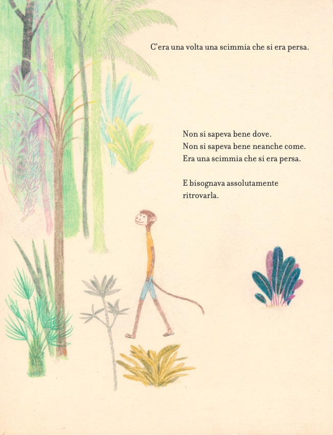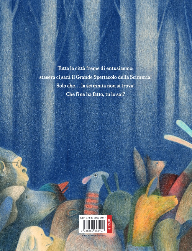 Tutta la città freme di entusiasmo: stasera ci sarà il Grande Spettacolo della Scimmia! Solo che… la scimmia non si trova! Che fine ha fatto? Mentre tutti la cercano, solo il lettore sa dov’è – e sa anche perché è sparita. Che c’entri l’amore? Forse. Di certo, solo una bambina molto paziente avrà la soddisfazione di scoprirlo – e di assistere al suo grande spettacolo.
