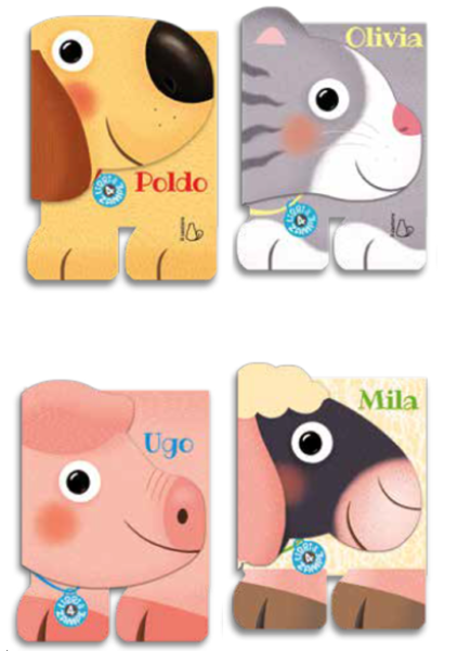 Poldo the dog loves to play outdoors. Olivia the cat must have her favorite toy. Hugo the pig is crazy about strawberries. Mila the sheep is very sleepy…