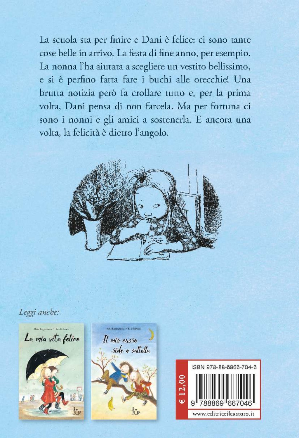 La scuola sta per finire e Dani è felice: ci sono tante cose belle in arrivo. La festa della scuola, per esempio. La nonna l’ha aiutata a scegliere un vestito bellissimo, e si è perfino fatta fare i buchi alle orecchie! Una brutta notizia però fa crollare tutto e, per la prima volta, Dani pensa di non farcela. Ma per fortuna ci sono i nonni e gli amici a sostenerla. E ancora una volta, la felicità è dietro l’angolo.