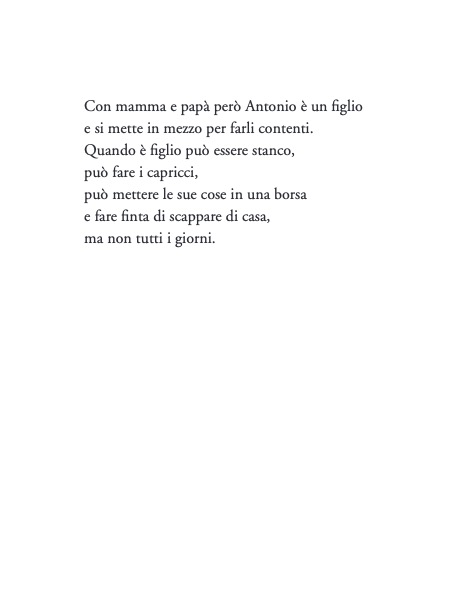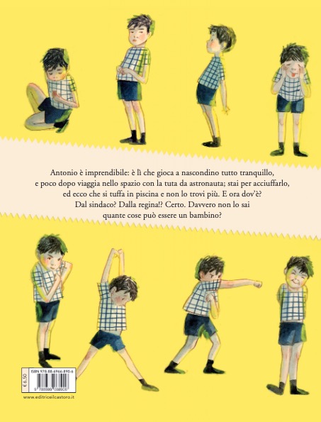 Antonio è imprendibile: lo lasci che gioca a nascondino sulla prima pagina, e nella terza è già su un altro pianeta con la tuta da astronauta; stai per acciuffarlo, ed ecco che si è tuffato in piscina e non lo trovi più.