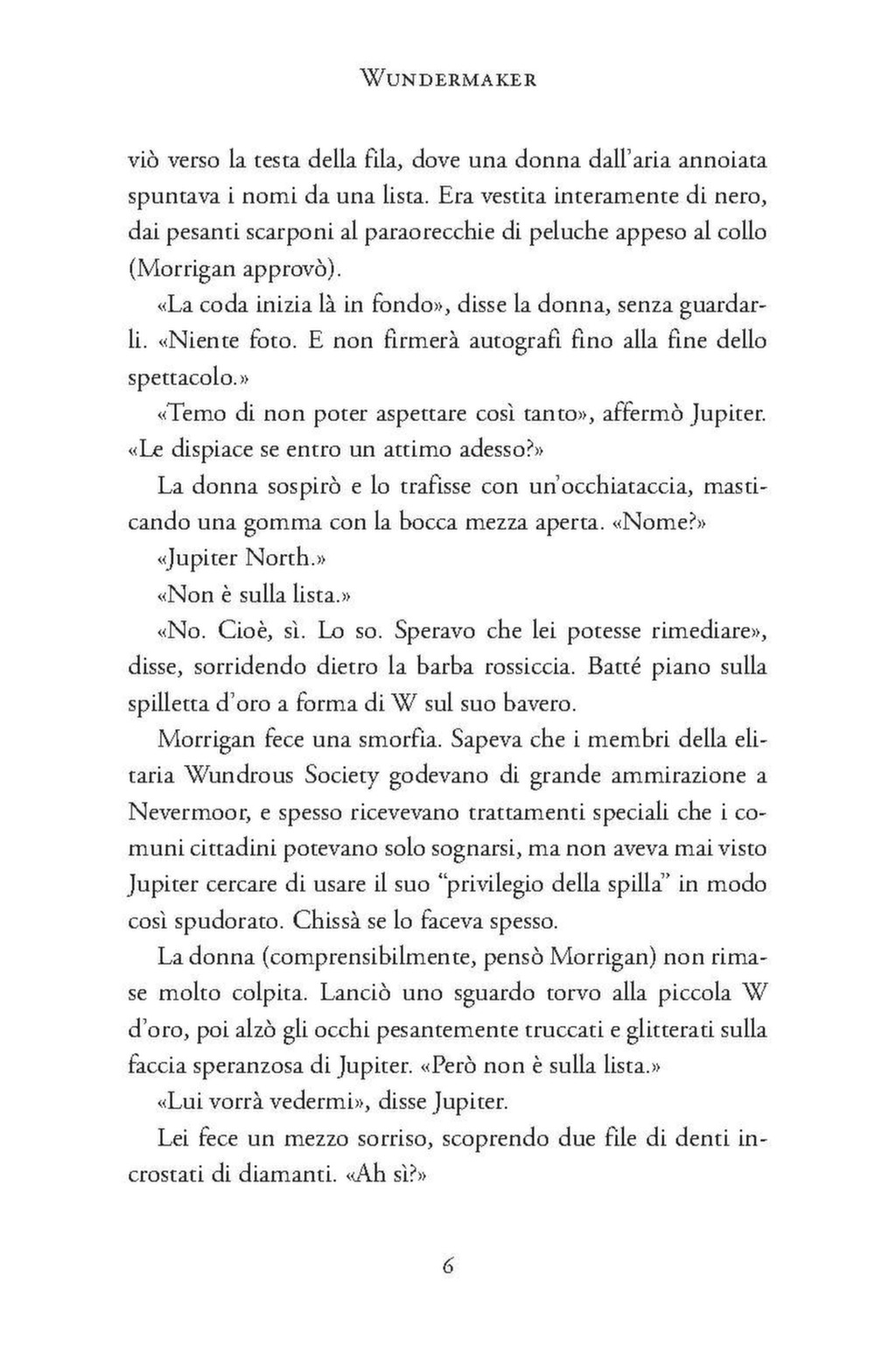 Dopo essere fuggita alla sua maledizione e aver superato quattro difficili prove, Morrigan Crow varca finalmente i cancelli della Wundrous Society. La attendono nuovi amici, una famiglia leale e opportunità incredibili… ma sfortunatamente non riceve l’accoglienza sperata. Come ha potuto dimenticarlo? Lei è una temuta Wundermaker. E la sua nuova scuola, invece di aiutarla ad abbracciare il suo potere, e insegna che tutti i Wundermaker sono malvagi, che lei è pericolosa, che la sua identità deve essere tenuta segreta. Nel frattempo misteriose scomparse sconvolgono la Wundrous Society e qualcuno minaccia di rivelare il segreto di Morrigan, mettendo a dura prova la fedeltà dei suoi amici. E poi c’è lui Ezra Squall, l’unico altro Wundermaker del Regno Senza Nome, l’uomo più crudele di sempre. Ma anche l’unico che sembra capirla e che promette di rivelarle la vera natura della Wunder, alla quale Morrigan non sa più resistere. Davvero tutti i Wundermaker sono malvagi? E se lo fosse anche Morrigan Crow?