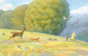 IL LIBRO: Un bambino decide di avventurarsi nel bosco per dipingere e mentre cammina si gode la bellezza della natura e sperimenta le meraviglie dell’immaginazione. Vede il custode del bosco in un uccellino, elfi gioiosi che vivono nell’erba, spiriti maestosi nelle nuvole e la sua immaginazione gli fa incontrare persino un unicorno! Il bambino disegna le sue avventure, e dopo aver riempito occhi e cuore, torna a casa felice e ispirato. Una storia che ci insegna a guardare, a scoprire la bellezza della terra e della natura di cui tutti siamo parte.